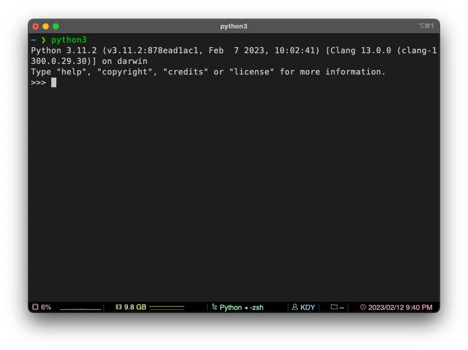 이제 터미널이나 iTerm(이 설치되어 있다면)을 실행한 다음 python3을 입력하면 설치한 파이썬을 실행할 수 있다.