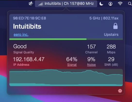 Wi-Fi 네트워크 상태와 신호 강도 및 품질을 모니터링하는 앱이다. 또 대체 채널을 찾아줘서 신호가 겹치거나 채널끼리 충돌하는 것을 방지해서 네트워크 속도가 느려지는 것을 막을 수 있다. 메뉴 바에서 보고 싶은 내용을 사용자의 필요에 맞게 커스텀 가능하다.