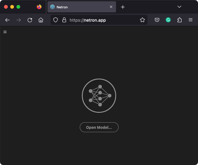 가운데 로고를 눌러 GitHub 페이지로 이동해 로컬에 NETRON을 설치할 수도 있고 Open Model ...을 눌러서 웹에서 작업할 수도 있다.