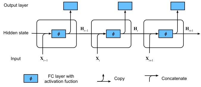각 입력에 대한 계산에서 hidden state가 계속 발생하기 때문에 우리는 이 과정을 recurrent computation이라고 부르고 이런 구성의 뉴런을 recurrent neurons, 이것들로 만들어진 네트워크를 Recurrent Neural Network(RNN)이라고 부른다.