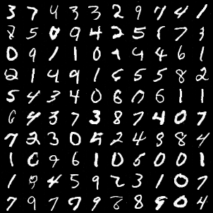 save_image(G(fixed_noise), f"generated_images/{epoch+1}.png", nrow=10, normalize=True)