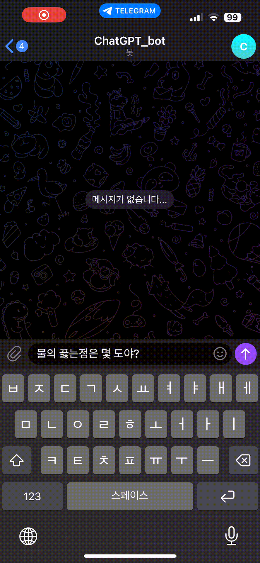 코드를 실행시켰다면 이제 기기나 데스크탑에서 텔레그램을 열자.