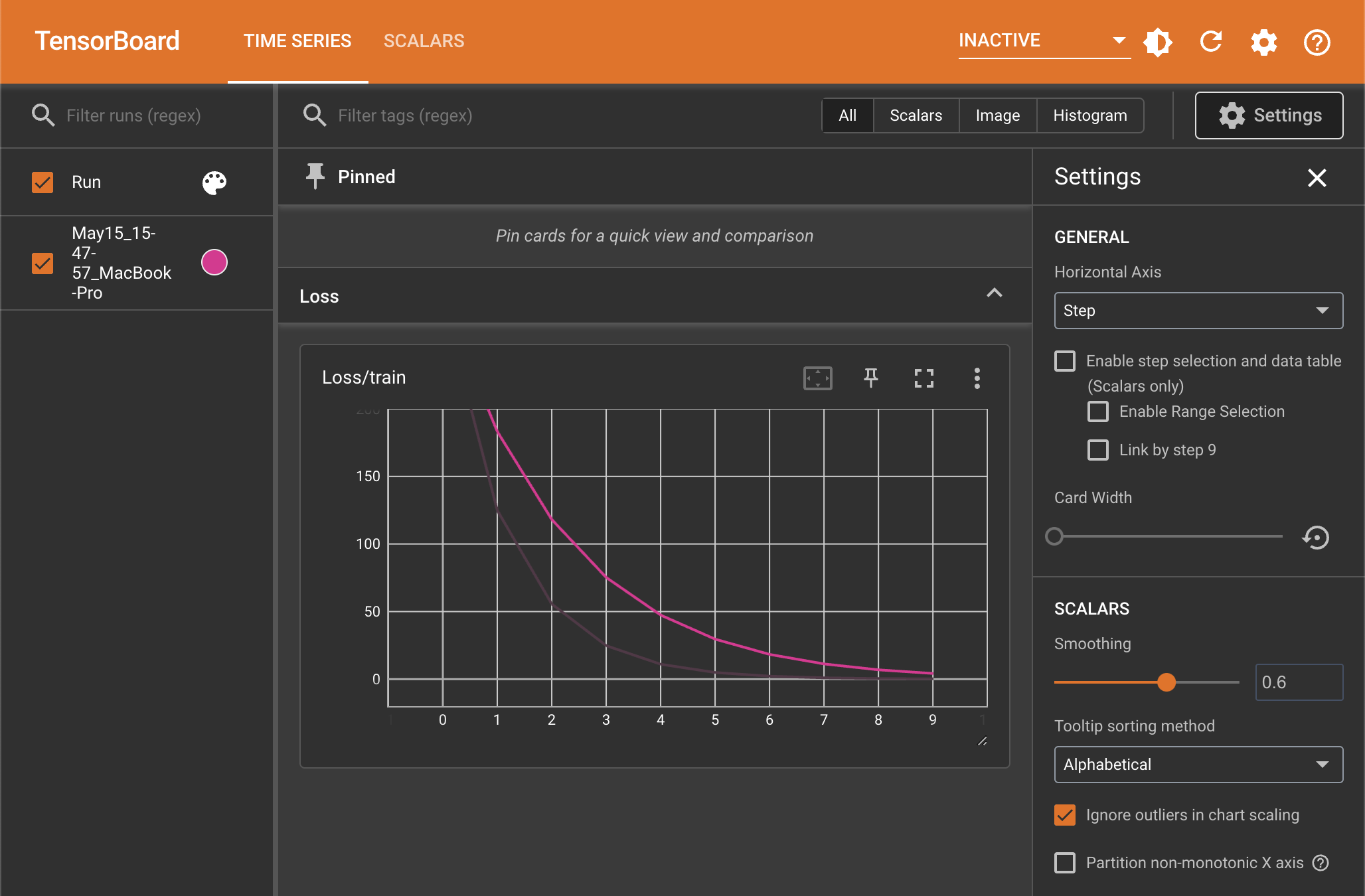 이제 테스트 코드를 실행시켜서 텐서보드가 잘 작동하는지 확인해보자.