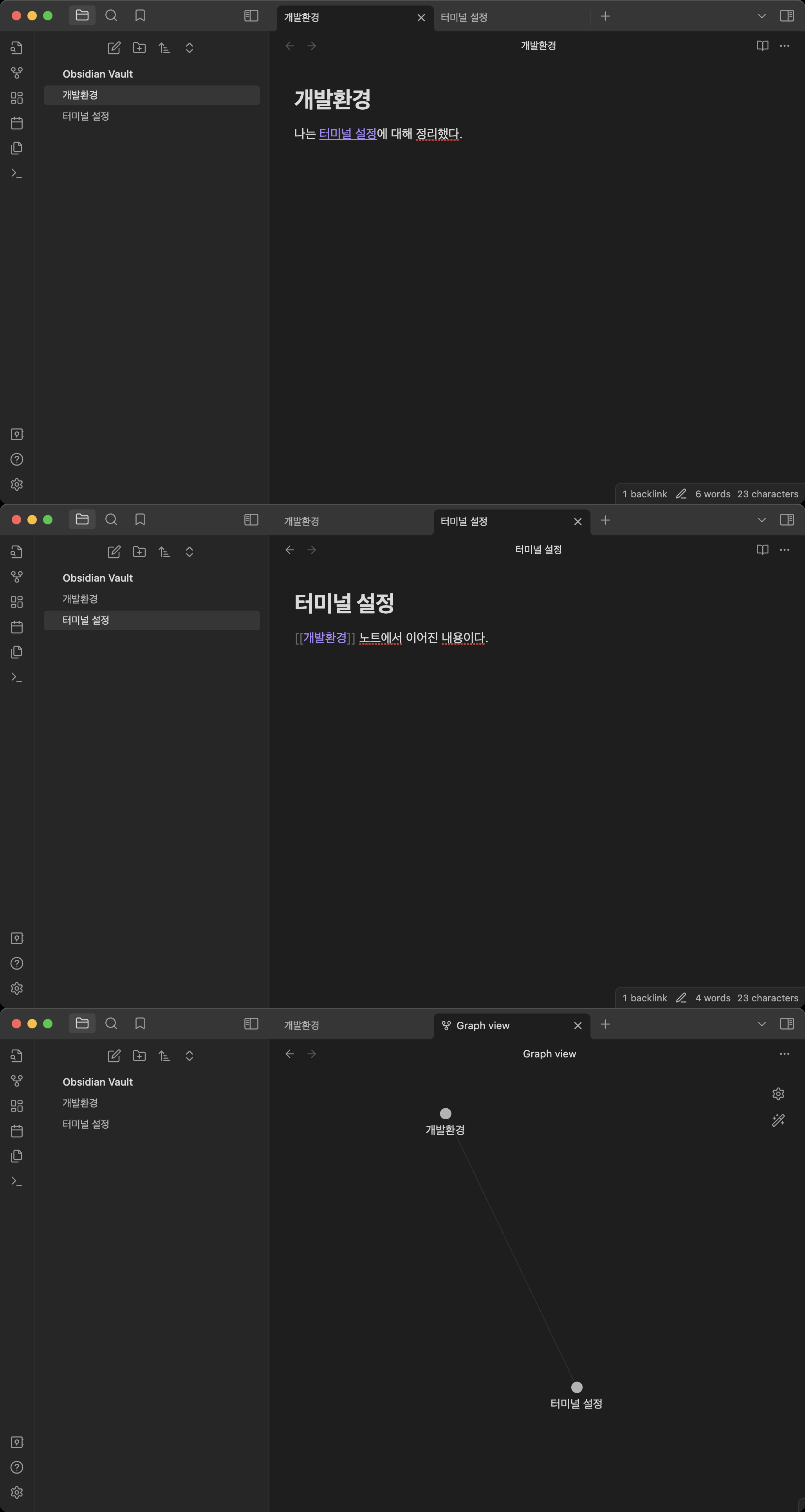 이로써 사용자의 지식 저장소가 하나의 디렉토리로 생성되며, 그 안의 모든 마크다운 파일은 자유롭게 생성, 편집, 링크할 수 있다.